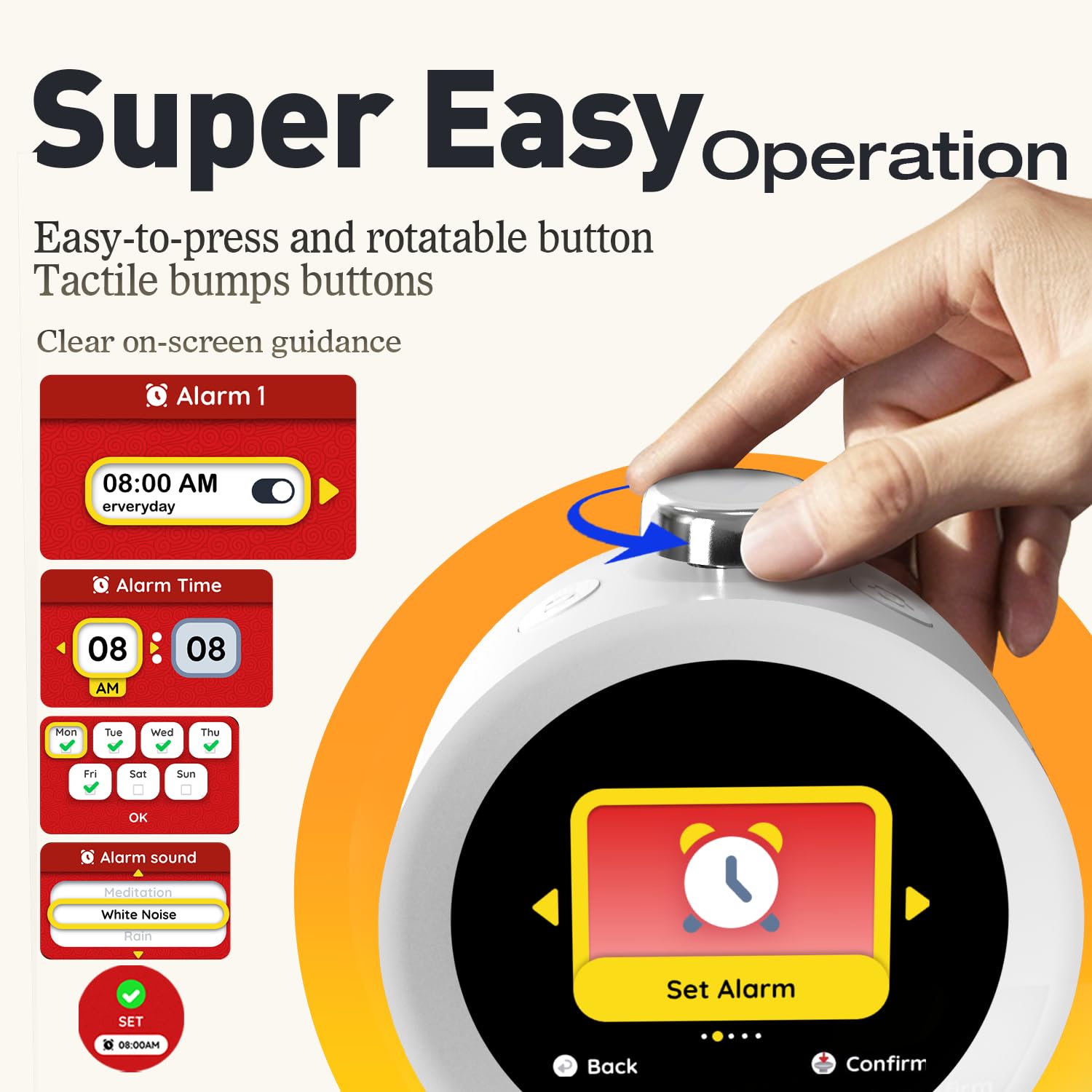 - All-in-One Display & Hourly Chime: The kids clock screen shows the date, day of the week, and indoor temperature (°C/°F), with 10 adjustable brightness levels for optimal visibility day or night. The hourly chime keeps you on track throughout the day, making it great for bedroom, living room, or home office.